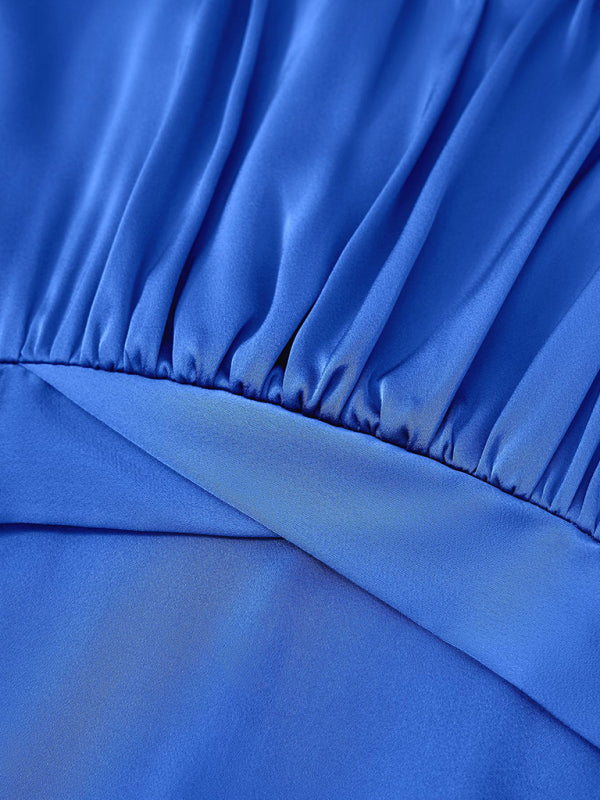 This stunning one-piece features delicate cami (sling) straps and a flattering neckline that highlights your shoulders. The defining feature is the cinched waist, which creates a beautiful hourglass silhouette before flowing into a relaxed, comfortable pant. Crafted from a soft, solid-color fabric, it serves as the perfect canvas for your favorite accessories.