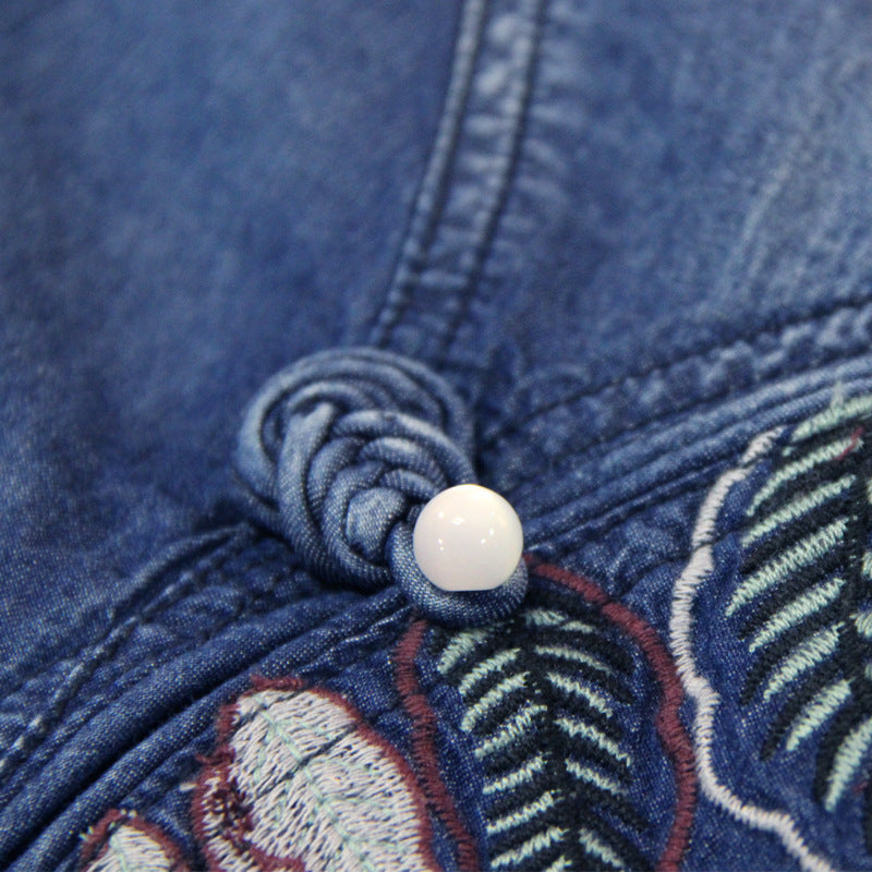 The 'Eastern-Rose' Embroidered Denim Cheongsam Dress