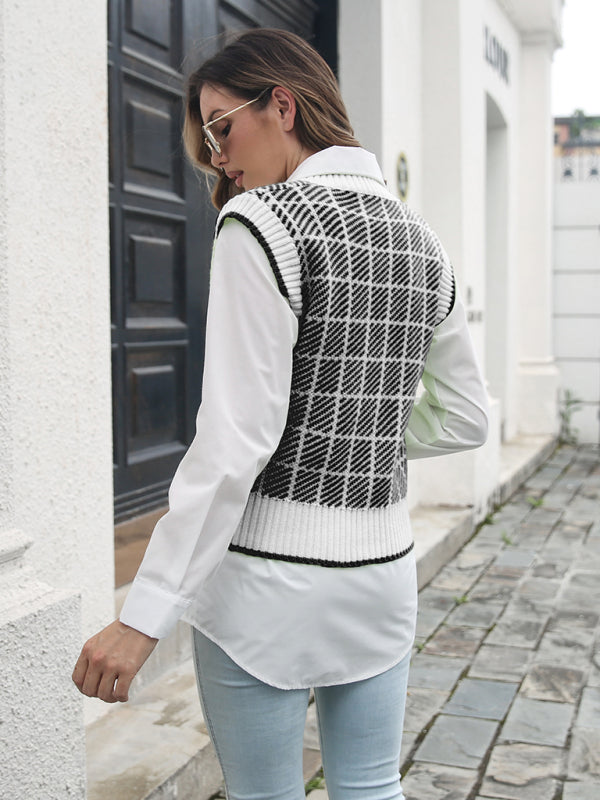 Women's fashion Plaid V-neck vest sweater